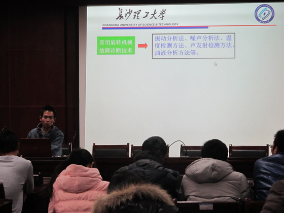 张亢博士毕业于湖南大学工学院,主要研究方向为机械振动与噪声控制、机械故障诊断与状态监测。他讲座的题目是:《局部均值分解方法及其在旋转机械故障诊断中的应用》。张博士讲述了旋转机械故障特征提取的背景,以及存在的不足,在此基础上叙述局部均值分解(Local mean decomposition, LMD)的特点和应用于旋转机械故障特征提取的意义,然后结合仿真分析,详细说明LMD方法的原理、优势,最后结合实例说明LMD方法在旋转机械故障特征提取中的应用过程与效果。