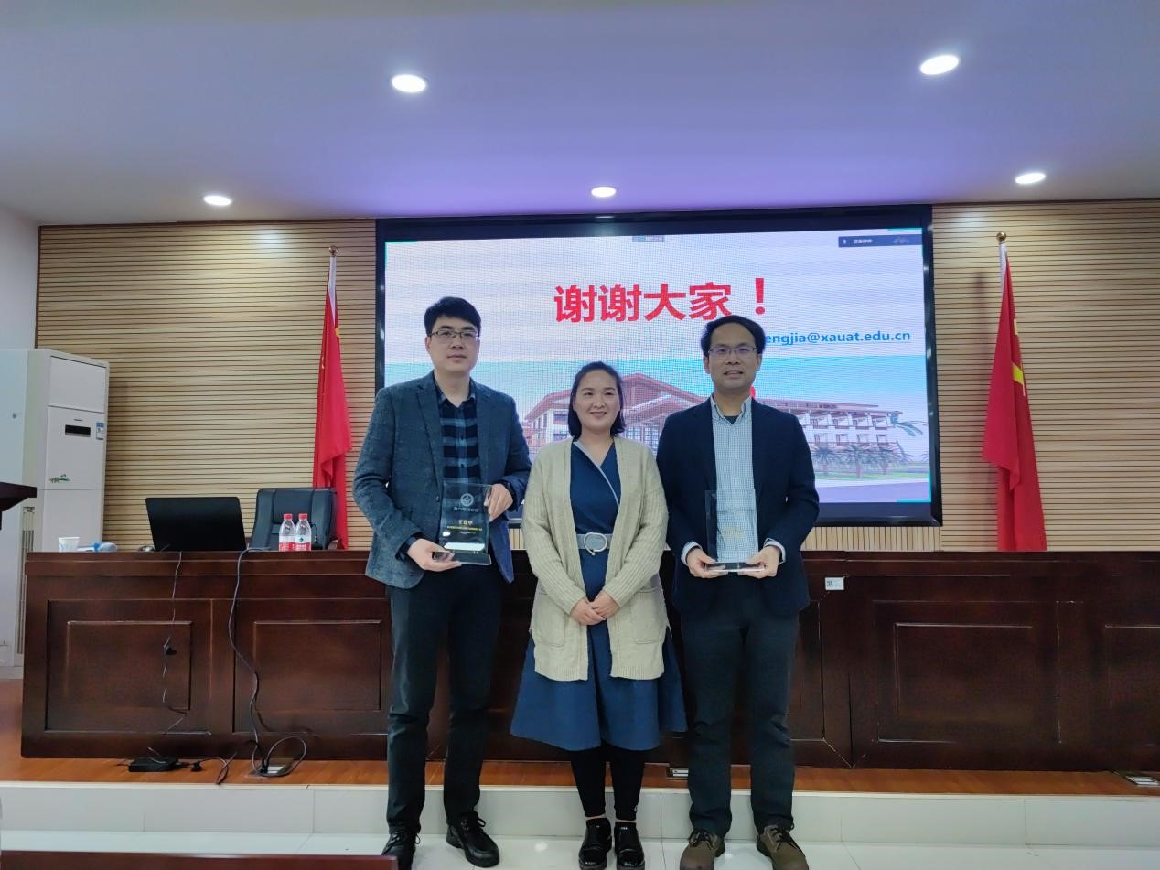 开幕式结束后,湖南大学彭晋卿教授和西安建筑科技大学王登甲教授做了精彩的学术报告,为此次论坛奠定了高水平的开端。彭晋卿教授以“零能耗建筑关键技术研究与思考”为题向大家介绍自己科研团队有关零能耗建筑关键挑战的研究成果;王登甲教授以国家自然科学基金重大项目“极端热湿气候区超低能耗建筑体系”为背景,介绍了孤立热湿区太阳能空调“逆向”设计方法及要点。能动学院副院长孙小琴教授为两位专家颁发此次专题论坛的纪念牌,最后参会师生集体合影留念。