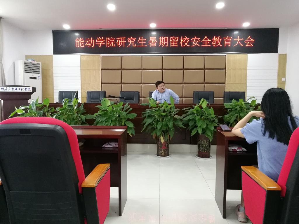 7月9日上午,能动学院于新能源大楼2栋502室召开研究生暑期留校安全教育大会,学院党委副书记杨雪峰、研究生辅导员胡琳琳以及留校研究生参加此次会议。