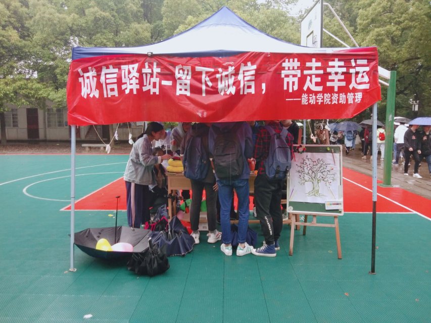 5月7日下午,为了提高学生道德素质,树立感恩意识,能动学院院团委资助管理部特开展以“知感恩、讲诚信、践于行”为主题的教育活动。本次活动分为两部分,金盆岭校区五教篮球场的摆点活动和西苑食堂门口的义卖活动。