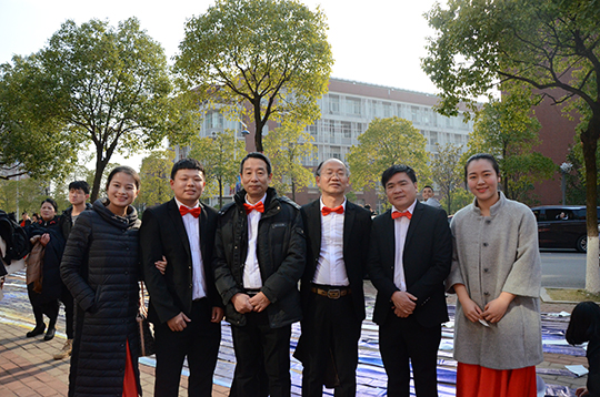 比赛前,学院中每位教职工都紧张筹备。现场,男教师以一身西装配上红色领结、女教师以一袭红色长裙亮相。排练、补妆等工作有序的进行着。到达大会堂后,学院全体教职工在会堂阶梯前合照。合唱开始,由17级年级辅导员罗亦欧领颂,一曲激扬澎湃的《保卫黄河》在会场回响,让观众仿佛回到了那个风起云涌的革命年代。场内掌声不断,气氛热烈。
