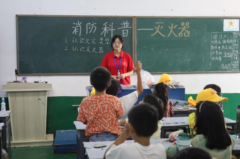 在课堂上,“红烛”队员王贺详细地讲解消防知识,从火灾的分类,如A类固体火灾、B类液体火灾等,到常见的灭火方法,像窒息法、冷却法等,都进行了详细阐释。同时,团队成员还重点讲解了不同类型灭火器,如干粉灭火器、二氧化碳灭火器,从原理到适用场景,细致拆解,为孩子们打开一扇扇消防知识的窗,教他们在不同火情下,选对“灭火武器”。