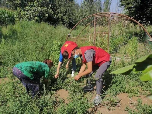 团队成员还一起走访了老人阿依夏木·吾斯曼,他们没有孩子,在询问了他们家现在的情况,她告诉我们,在政府的帮助下,自己每个月有了生活补助,非常感谢党和国家。团队成员们帮助两位老人打扫了院子里的卫生,帮忙浇花,陪伴他们渡过了一个愉快的下午。