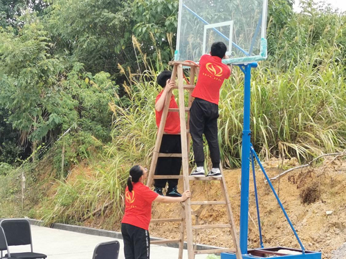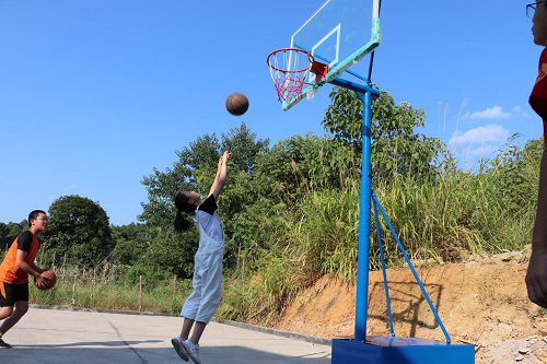 7月29日,永丰村支部前坪的空地上立起一批篮球架。该篮球架为威廉体育williamhill能源与动力工程学院赠与,用于“红烛润心筑梦团队”永丰支教点篮球兴趣小班课的开展以及丰富永丰村孩子们的课余体育生活。