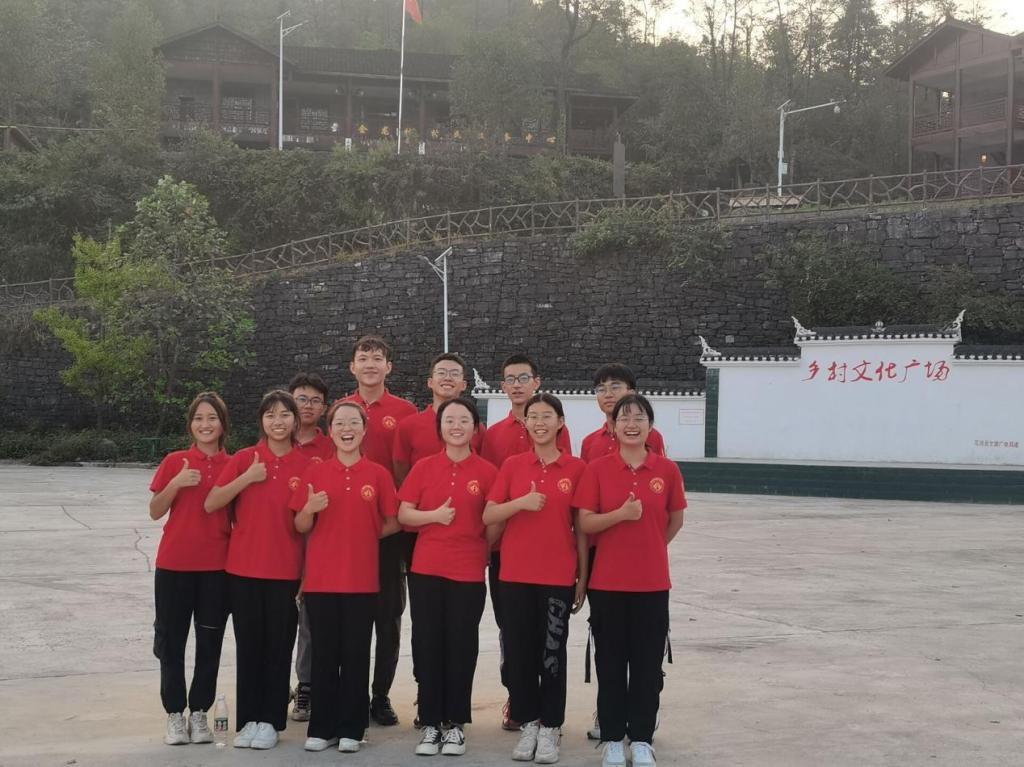 “你们不用太过拘束,好好放松,你们这代人是最可爱的人。”澎湖村主任这样讲道。见面会结束,澎湖村干部早已安排好行程,邀请一众队员前往电视剧《十八洞村》实景拍摄地、脱贫示范点——金龙苗寨。立于陡崖之上,清爽的山风让队员们的心情也为之一振,苍穹之下,叠叠峦嶂,大好河山,国泰民安。随着金龙苗寨村部前的最后一张合影结束,这场最远的旅行也画上了终点……