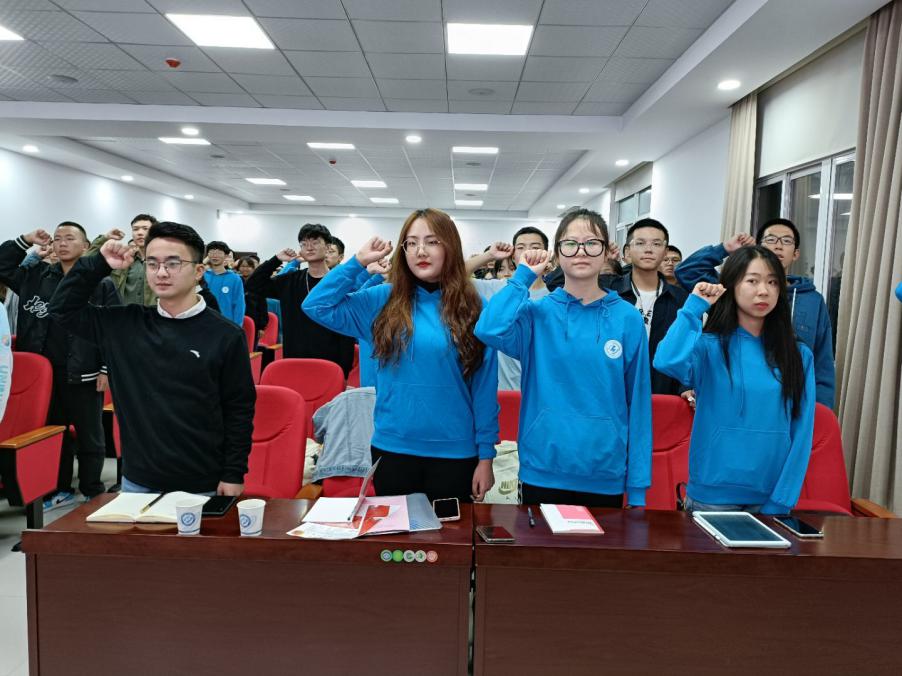 仪式开始,全体成员奏唱团歌,庄严宣誓,同学们满腔热情,誓言掷地有声。紧接着,李文豪为第十八届第二期能动学院学生会成员授徽,学生会精神代代相承,薪火相传。随后,生权部部长郭一彤作为学生代表发言,严谨、热爱、不怕困难是她给新一届学生会干事的寄语。