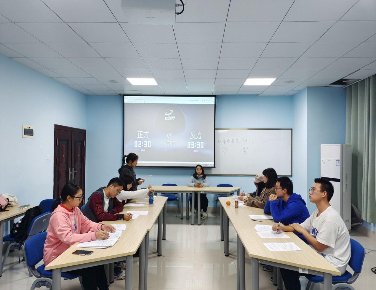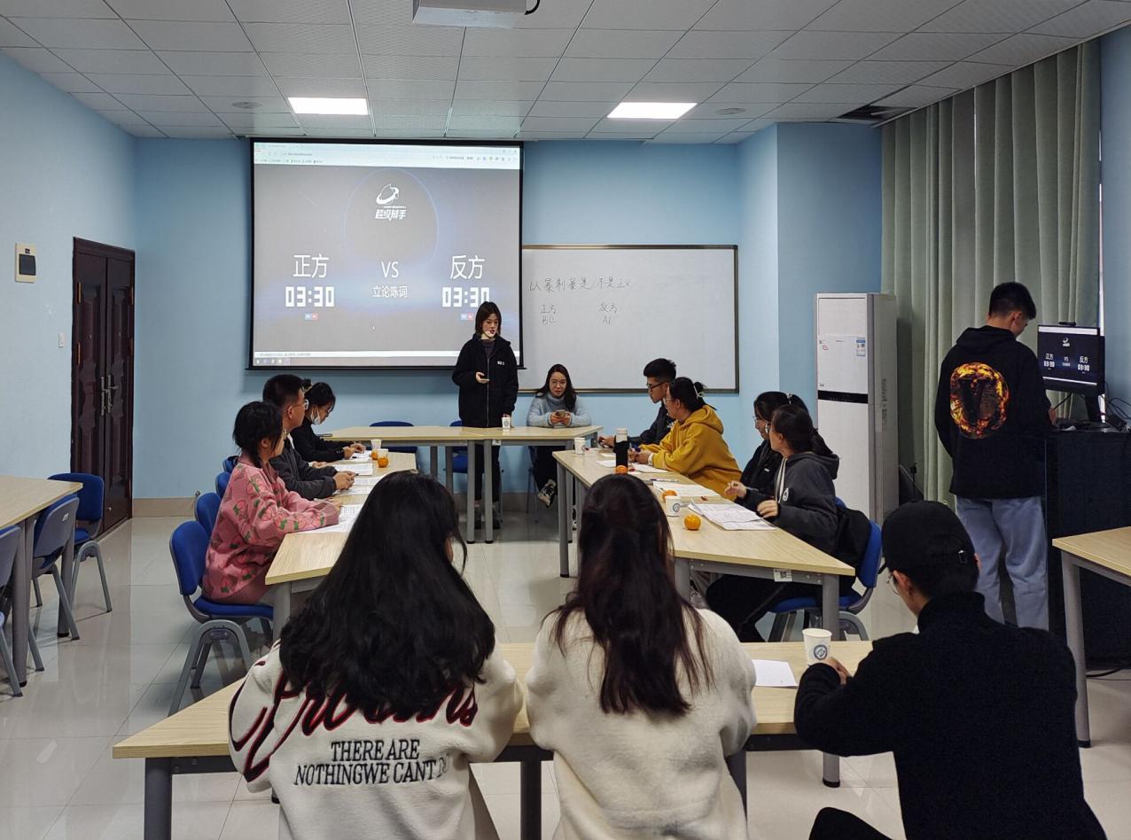 11月20日下午,能源与动力工程学院在云塘校区新能源大楼503室开展新生杯辩论赛半决赛。参赛辩手分别为阳光彩虹小白马队、四朵玫瑰两根刺队、永远都队和能卓能说队,能动“砺剑”辩论队成员杨雪、徐明月、汪恩东作为评委出席。