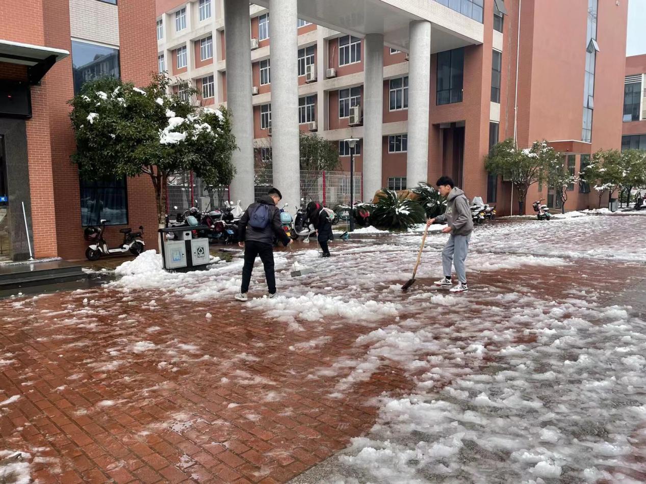 寒潮来袭,长沙普降大雪,带来赏心悦目雪景的同时,厚厚的积雪也给广大师生的出行造成了困难。关注到这一问题后,能动学院学生会迅速组织志愿者,顶着凛凛寒风,清扫积雪。从楼前到楼后,随着志愿者们手中的铲子一次一次地挥动,滑溜溜的雪被堆到一边,露出熟悉的红砖地,一砖一瓦,皆凝聚着相互关心,无私服务的温情。尽管寒风刺骨,但志愿者们全无畏惧,毫无怨言。在几小时的努力之后,大家望着这条平整洁净的路,会心一笑。一位同学表示:“为同学们服务本来就是让我快乐的事。”