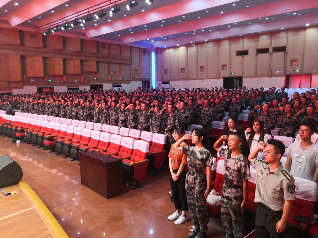 捐赠仪式结束后,民兵连张书源带领全体新生光荣宣誓,以饱满的精神迎接即将到来的阅兵式和大学生活。老生代表,建环1601班杜韦以自己的亲身经历,勉励大家做一个优秀的人才。新生代表19级谭湛敏说:“能人辈出、动力十足”的口号早已烙印在我们每个人的骨子里,我们有信心,有能力、有责任接过接力棒,圆梦百强,助力民族复兴、国家富强!”接下来,陈荐就学院的基本情况、如何开展大学四年学习生活以及树立明确目标等方面向各位新生做了简单介绍。