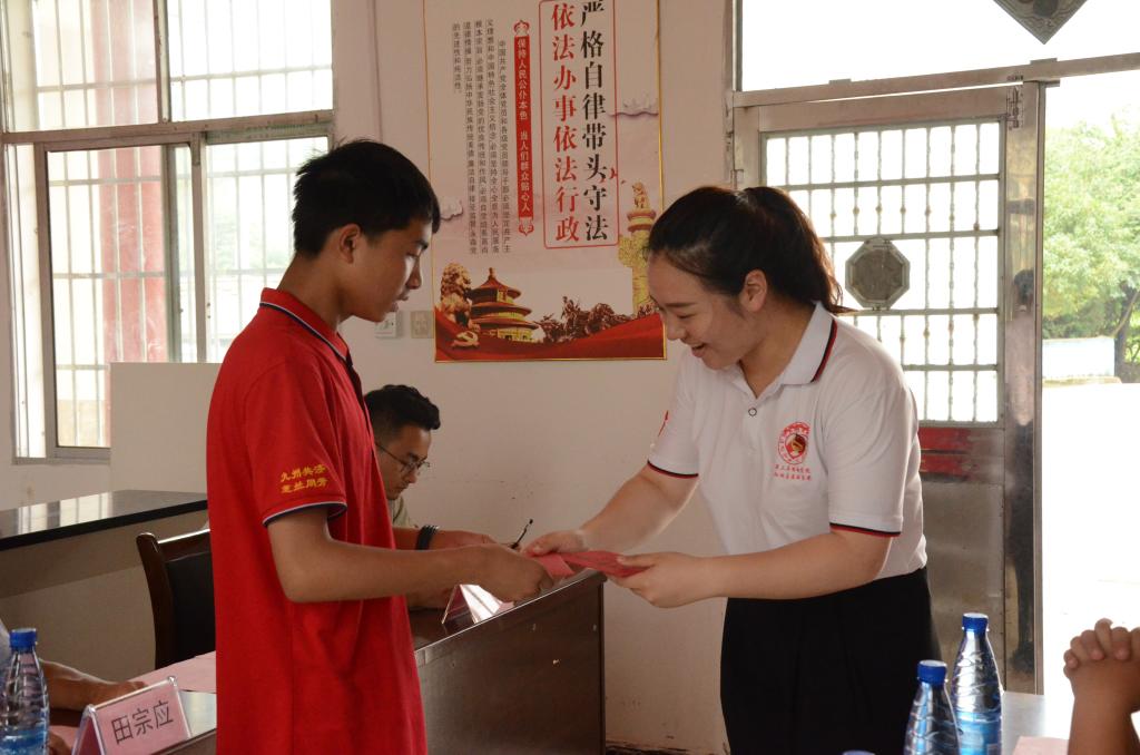 “今年是我在澎湖村小学与红烛团队相处的第三年,每当寒暑假等待这些哥哥姐姐们的到来,已经成为我们一年中最期待的事情之一……”干净还带着些稚嫩的声音从澎湖村的村部传出,田庆奇同学正代表受资助学生表达着对“红烛”团队以及社会爱心人士的感谢。这里正在举行着威廉体育williamhill能源与动力工程学院“烛梦育人,梦想启航”奖助学金颁发仪式。