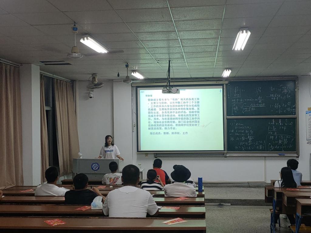 在会上,资助部王丹介绍了部门的主要职能,主要包括资助、宣传、勤工助学三个部分,并协助学院完成冬季车票补贴活动、寒棉衣的发放等。针对近期的资助工作,王丹重点介绍了家困生认定及国家助学金评选两项工作的内容。并对特困补助申请流程、勤工助学进行了详细介绍。此外,王丹向生活委员提出工作要求,包括对接中需要注意邮箱发送、班级文件格式等细节问题。会议最后,资助部全体成员为21级生活委员