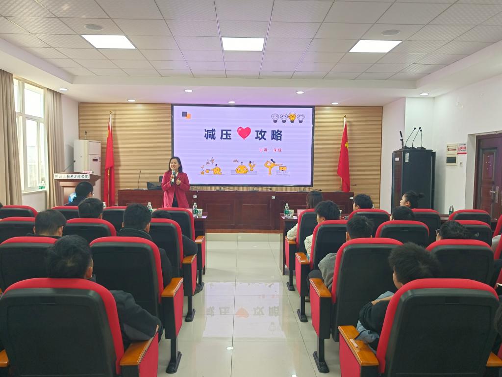 12月18日下午,能动学院在云塘校区新能源大楼2栋502学术报告厅组织云影讲坛之减压“心”攻略。讲座由湖南农业大学学生工作部副部长兼心理发展指导中心主任朱佳主讲,校学工部副部长陶传谱、心理健康中心主任易敏、学工同仁、学院2024级研究生及本科生代表参加本次活动,活动由能源与动力工程学院党委副书记、副院长张晓烽主持。