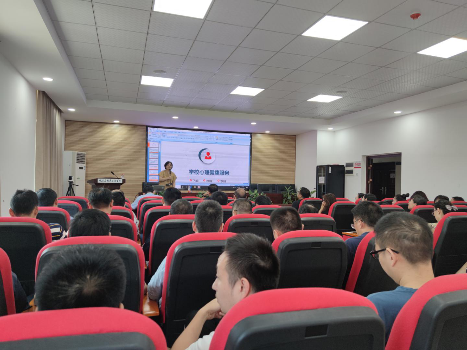 为了普及学院班主任、研究生导师心理健康知识,提高工作能力,8月27日下午,能源与动力工程学院在新能源大楼二栋504开展了心理健康教育工作培训。培训由学校心理健康中心主任龚勋主讲,学院党委副书记靳攀科主持,学院党委副书记(主持工作)成华、全体班主任和研究生导师参加。