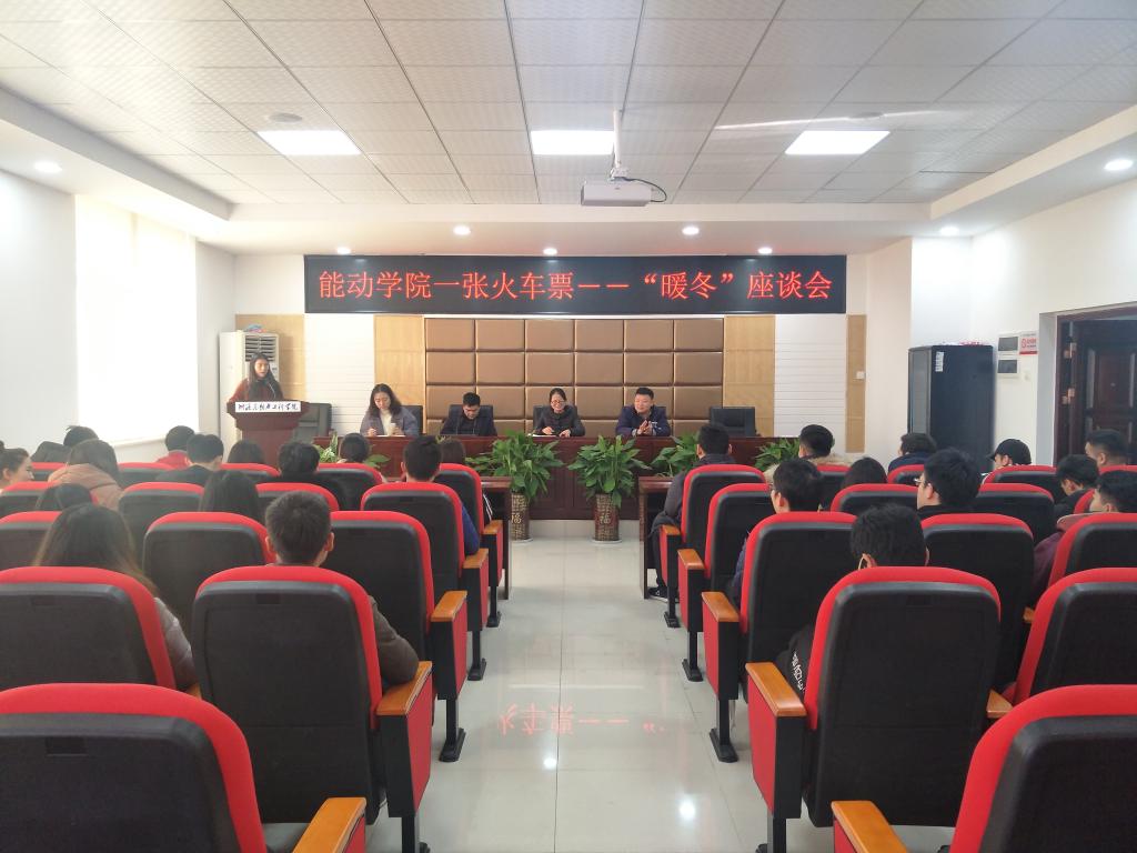 12月18日中午,能动学院于新能源大楼2栋502会议厅举行一张火车票—“暖冬”座谈会,能动学院党委书记陈冬林,党委副书记杨雪峰,学工办全体老师以及能动学院部分学生参加本次活动。