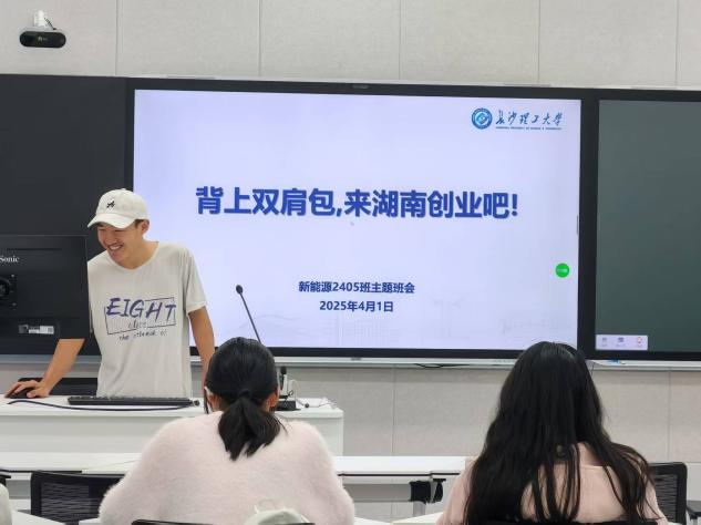 辅导员彭博以“背上双肩包,来湖南创业吧!”为主题向各班班干部、学生代表详细解读湖南省积极部署支持大学生创新创业“七个一”行动。他鼓励大家积极参与金种子大赛,更好地提升自己的创新创业能力。