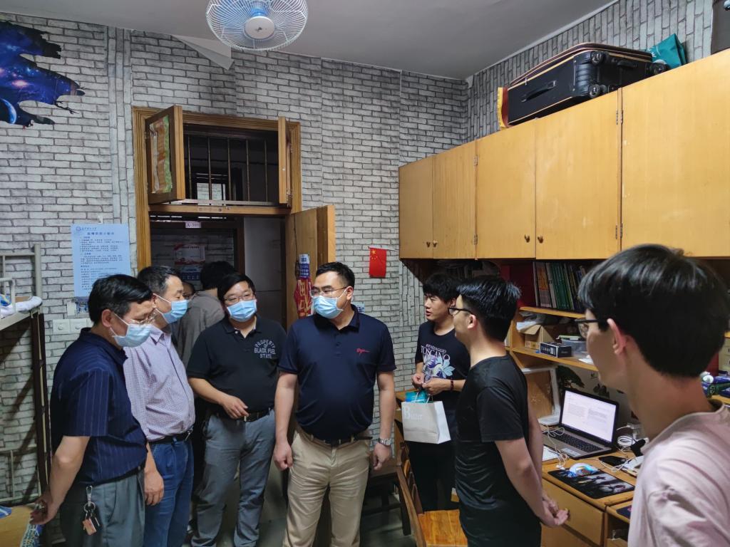 5月21日下午3:00,能动学院党政领导、全体辅导员、班主任在党委书记成华的带领下,来到学院2020届毕业生宿舍,看望返校学生。