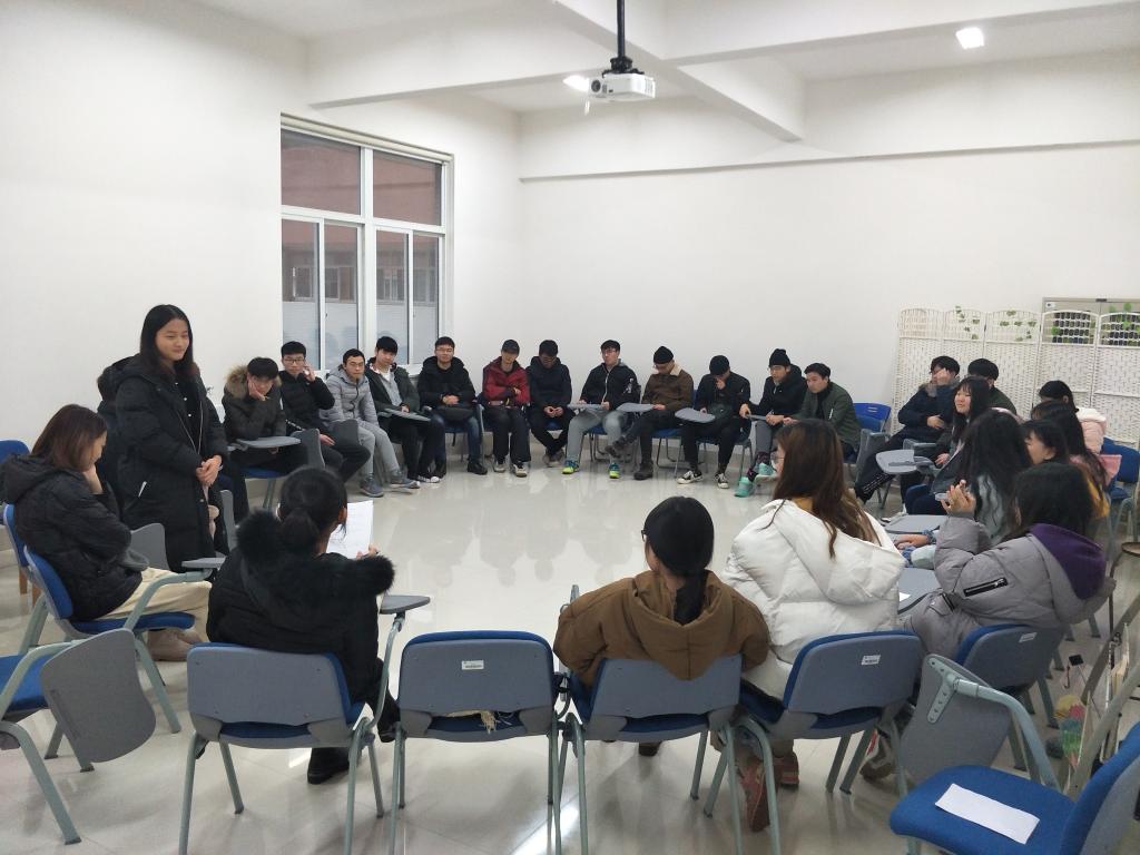 12月26日下午15:00,能动学院在新能源大楼2号楼503团体辅导室开展职业规划团体辅导活动。活动由学院心理辅导员汪华丽主持,15级成功就业与保研学生代表和16级共36名学生参与。