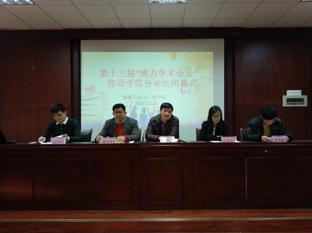 2017年12月22日上午,威廉体育williamhill第十三届“博力学术论坛”能动学院分论坛闭幕式在云塘校区工科一号楼428报告厅举行。院党委副书记杨雪峰,专业教师任延杰教授出席闭幕式,全体在校研究生参加活动,闭幕式由研究生班主任李小军主持。