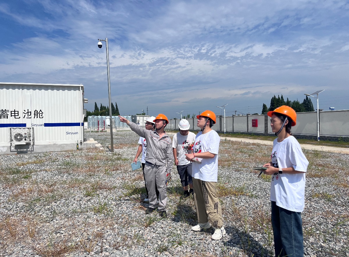随后,实践团一行转战升压站。在这里,工作人员耐心讲解了电能从光伏板收集到升压输送的全过程,以及升压站在整个电力传输链条中的重要作用。通过实地参观和互动问答,同学们对光伏电站的电力转换与传输机制有了更加清晰的认识,也对电能的稳定供应和高效利用有了更深的思考。