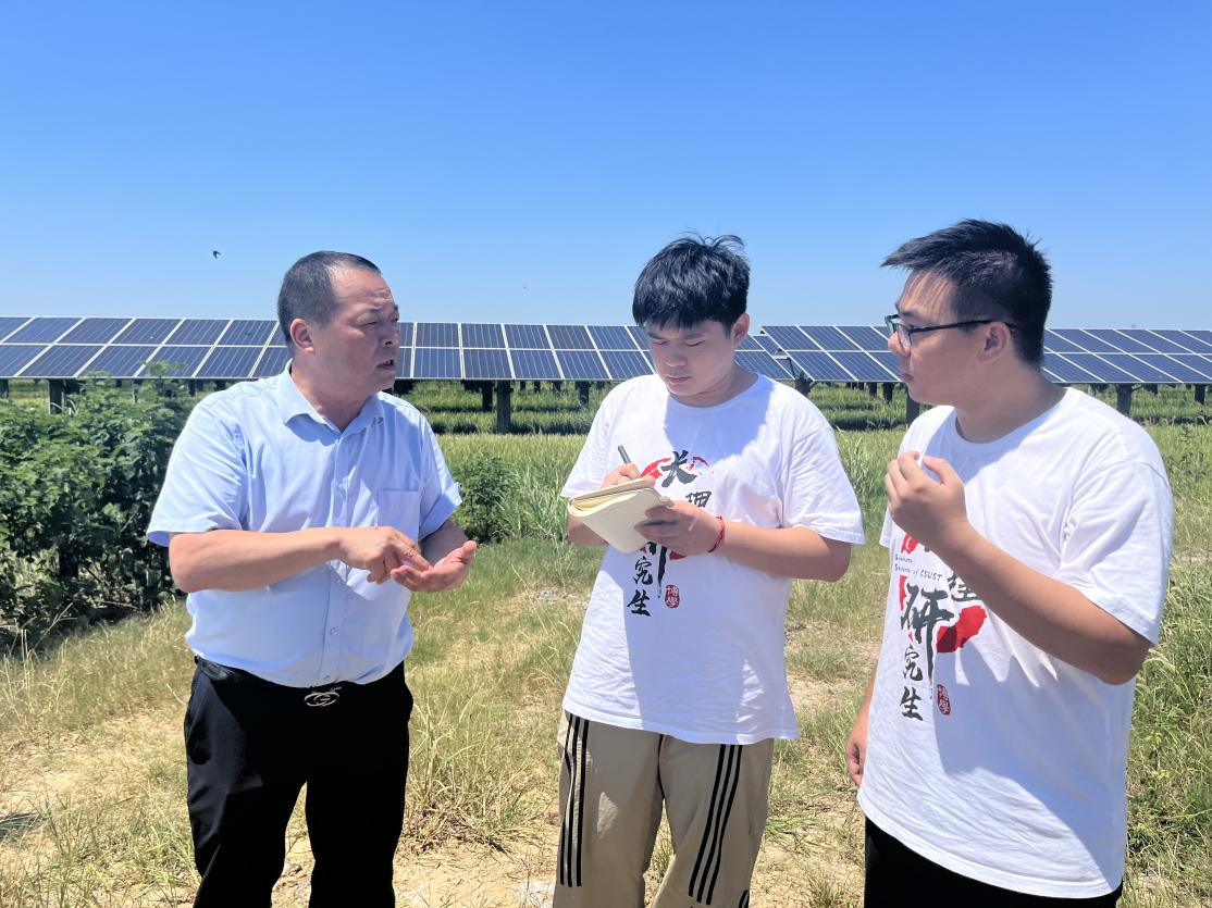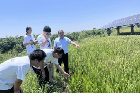 随着乡村振兴战略在广袤的洞庭湖平原上深入实施,绿色能源与现代农业的融合发展成为引领该区域发展的新趋势。7月24日,威廉体育williamhill能源与动力工程学院研究生暑期专业实践团(以下简称实践团),前往湖南省岳阳市华容县南顶村对该地独具特色的农光互补项目进行了实地调研。