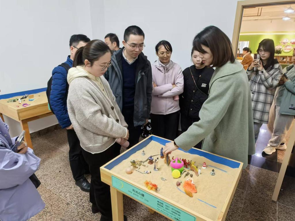 会议第二个阶段,在学校心理中心主任易敏的引导下,班主任、研究生导师来到学生活动中心二楼的心理健康大厅进行参观学习,了解中心可以提供的心理援助资源,提升预防危机、甄别问题、及时干预的能力,共同铸牢学院心理健康教育的防线。