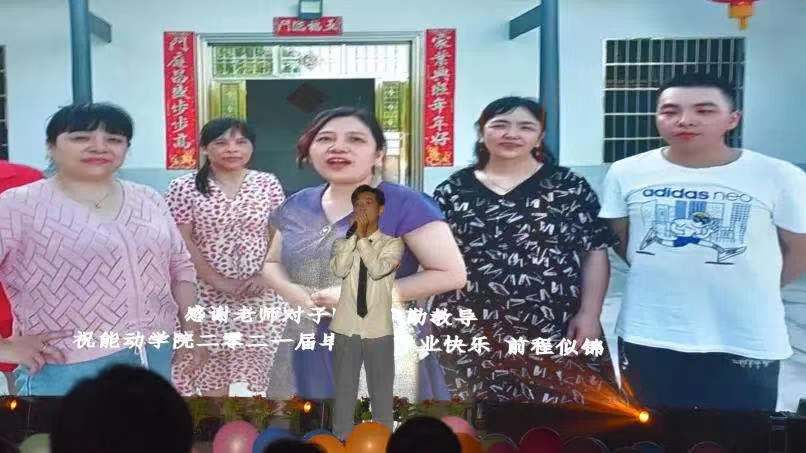 典礼过程中,还穿插了形式多样的节目。有纪念大学四年时光的光影剧、有老师们倾情献唱的《凤凰花开的路口》,还要师生们共同呈现的《你好!能动人》的朗诵节目。24位家长的祝福视频环节,感人至极,引得现场师生频频落泪。典礼的尾声,退役毕业生胡尔买提带领全体毕业生庄严宣誓,整个会场回荡着大家的誓言,也将典礼的气氛推向高潮。