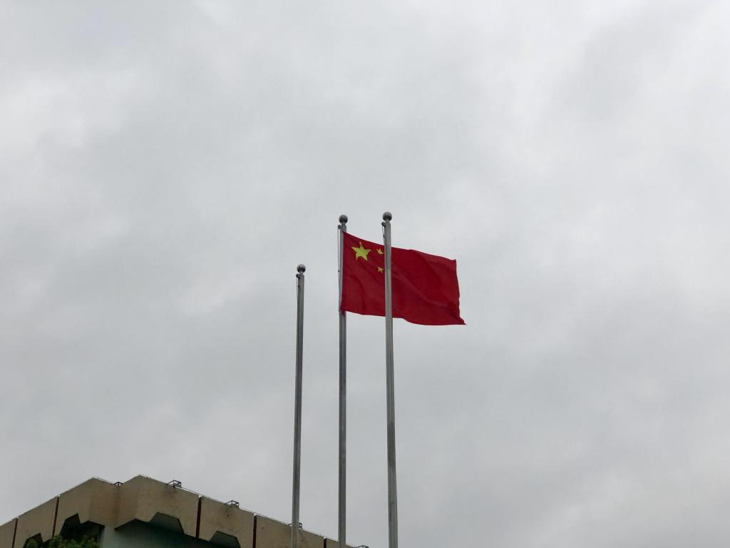 在仪式开始前,全体同学合唱了两支军训时期经常唱的红歌,开启新一天的学习与生活。不远处,国旗班的同学们唱着响亮的歌声、迈着整齐坚定的步伐走来,瞬间吸引了全体同学的注意,国旗在大家响亮的国歌声中冉冉升起,尽管气温偏低,但大家的内心温暖且充满力量。接下来,全体同学在国旗班班长的带领下,进行宣誓,字字铿锵,代表着大家对未来四年的期许与承诺。