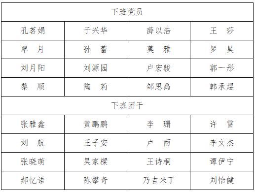 根据《能源与动力工程学院关于选拔2022级新生下班党员、下班团干的通知》,经自主报名、初审考核、面试选拔、组织讨论等环节,能源与动力工程学院最终确定孔茗娟等16名同志为2022级下班党员,张雅鑫等16名同学为2022级下班团干。