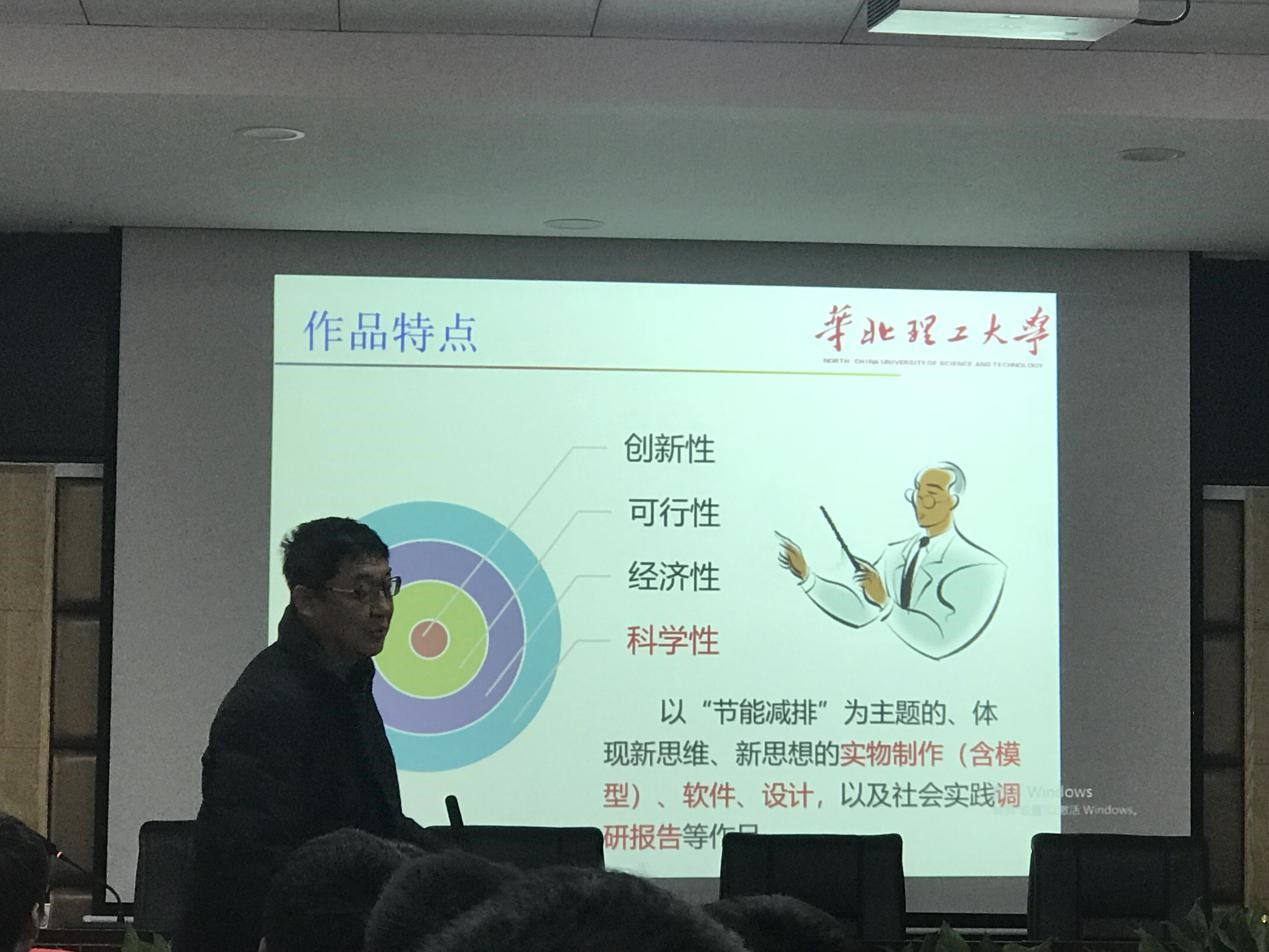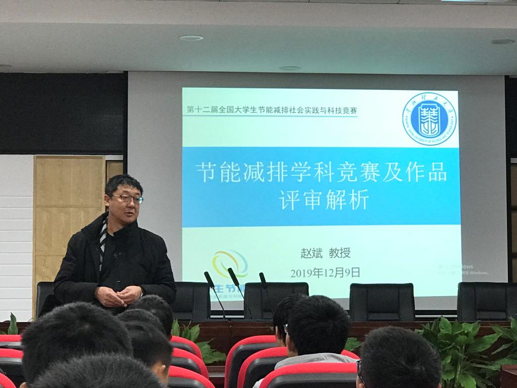 12月9日上午10:30,能动学院“节能减排大赛”作品分析讲座于新能源大楼2栋502举办,本次讲座成功邀请到了华北理工大学、全国大学生节能减排竞赛评委和专家委员会成员赵斌教授为同学们进行讲解。