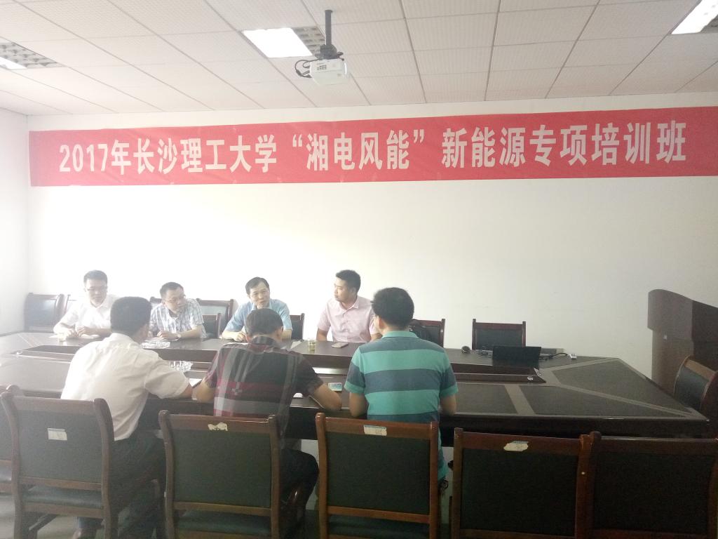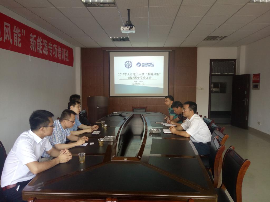 2017年7月14日,2017年威廉体育williamhill“湘电风能”新能源专项培训班开班仪式在我院工科一号楼A422室举行,湘电风能龙辛技术副总、吴晓鹏副院长、刘自强副部长、王成泽工程师、我院陈荐院长、田向阳副书记、唐明珠副主任及新能源科学与工程专业的部分本科生参加开班仪式。威廉体育williamhill“湘电风能”新能源专项培训班目的是湘电风能选拔2014级新能源专业本科生参加风资源评估工程师培训,实现学校人才培养和企业人才需求无缝对接。