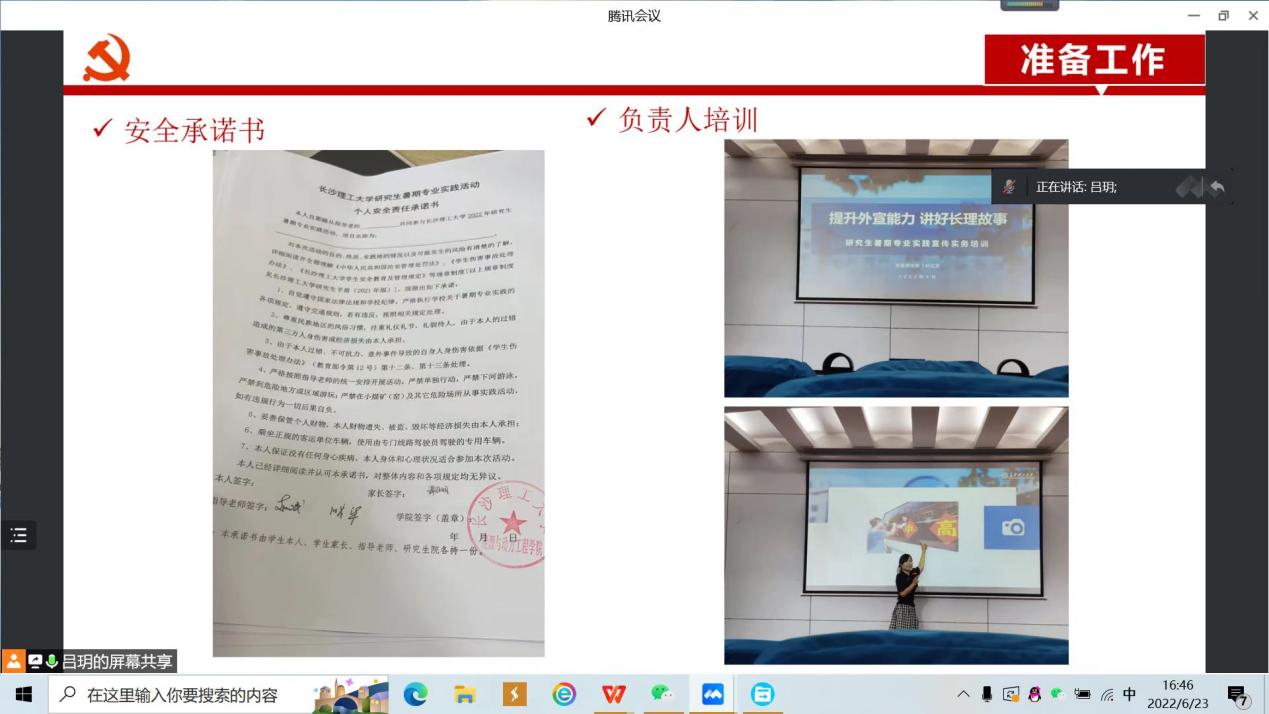 会议上,吕玥从项目介绍、准备工作、阶段计划和结项要求四个部分做了汇报,其中包含队服制定、安全承诺书和负责人培训等细节,并提出下一阶段实践团队的工作安排。团队指导老师赵斌曾作为中组部团中央第17、18批援藏博士团成员,在藏3年8个月零八天,援藏结束后指导威廉体育能动学院、电气学院共4名研究生从事西藏太阳能利用方向的专业实践。为保证此次实践安全、务实、高效地顺利进行,他从自身经历出发,着重强调了解民风民情、做好防护等前期筹备工作的重要性,组织成员明确分工,在调查研究中发现问题、对照检查、深化感悟、寻找措施。他也鼓励同学们把调查研究的结果转化为科学决策的有力依据,形成求真务实的调查研究之风。