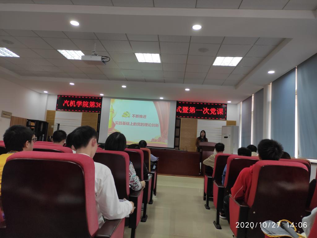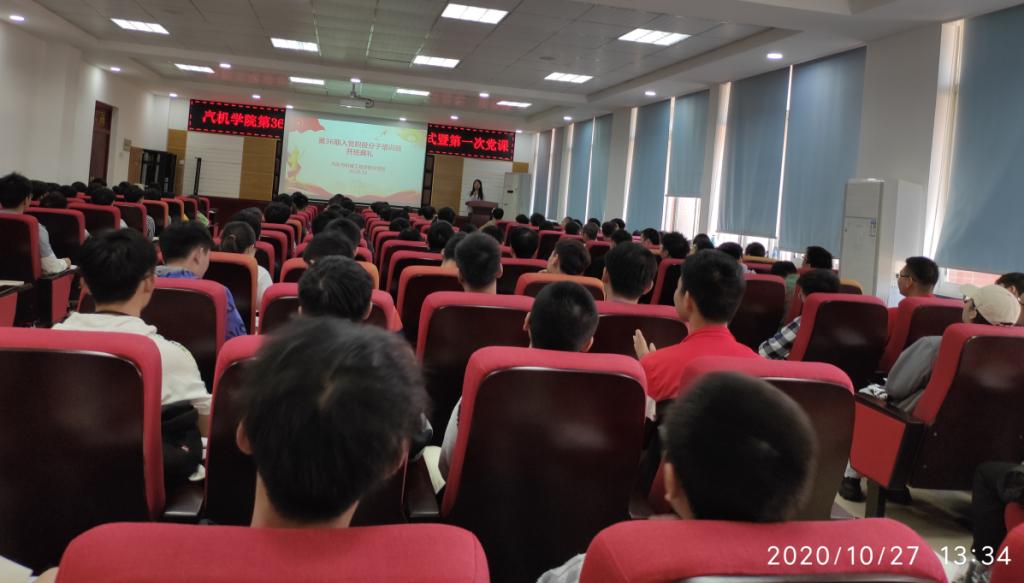 2020年10月27日下午,汽车与机械工程学院第36期入党积极分子开班仪式在工一B417顺利举行。党建辅导员王丽丽、学生第四党支部副书记刘志华和本期127名入党积极分子参加仪式。