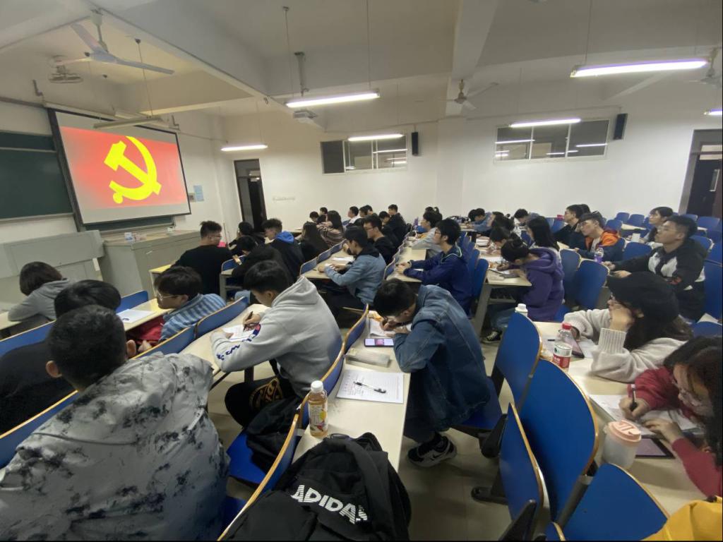 2020年11月3日晚18:30,汽车与机械工程学院分党校组织第22期预备党员在工一B205集中开展党章理论学习。第22期预备党员按时参加。