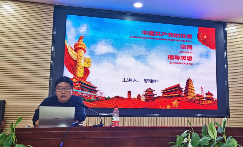 2020年11月12日晚,汽机与机械工程学院12期党员发展对象培训班第四次专题党课在新能源大楼2栋502顺利举行。本次党课以“中国共产党的性质、宗旨、指导思想”为主题,由能动学院党委副书记靳攀科主讲。