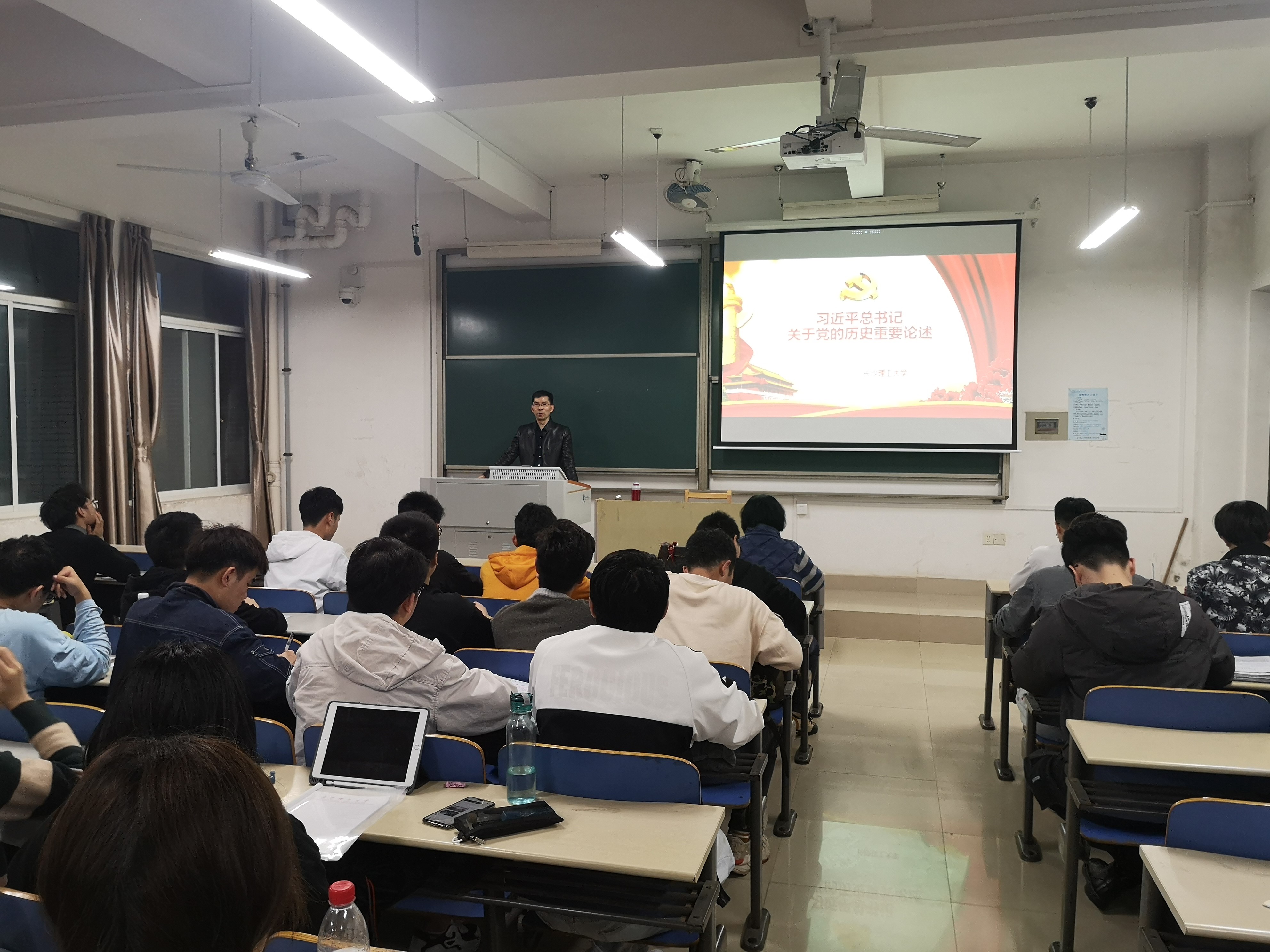 邹新树主要从“习近平总书记关于党史学习的要求、习近平总书记的党史观、深刻把握党史学习教育的重点”三个部分进行讲授。他指出,习近平总书记关于党的历史重要论述是习近平新时代中国特色社会主义思想的重要组成要素,强调“学史明理、学史增信、学史崇德、学史力行”的党史学习要求,并围绕这十六字一一展开进行详细解读。在授课过程中,他结合身边事例和个人经历,充分调动学生们的学习兴趣,激发学生的共鸣,课堂内容丰富详实,生动有趣。