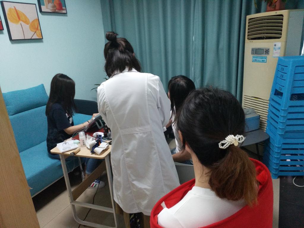 在义诊活动中,江医生认真细致地为学院老师们测量血压、中医把脉、耐心讲解中医保健穴位和食疗等方面的健康知识,并对我单位部分患有颈椎病、肩周炎、关节炎等慢性疾病的同事进行中医检查和相应的理疗。老师们反映,义诊后病症得到有效缓解,诊疗效果良好。