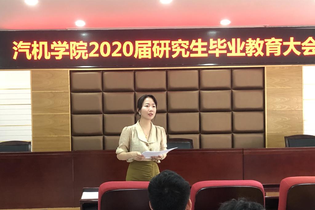 2020年6月11日下午17:00,在工一B417会议室举办了2020届研究生毕业教育大会暨“最后一堂思政课”。学院党委副书记刘亚辉、研究生辅导员宋新、科研办主任陈娅玲、就业辅导员李特超出席了本次会议。