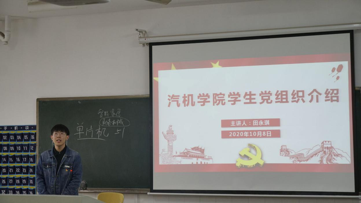 2020年10月8日下午,汽车与机械工程学院于金盆岭校区16教313组织召开2020级新生入党介绍会,近180名学生参加。