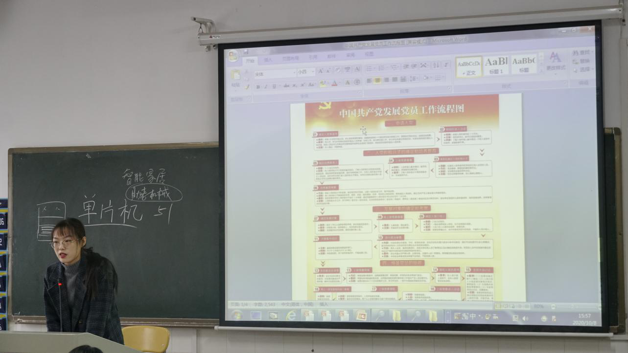 会议伊始,党员田永琪讲述了汽机学院学生党组织构架,并带领同学们思考“为什么想要入党”,引导大家树立正确的入党动机。接着,党员钟祯健、肖淞珂、邓蕾、刘志华就各特色支部的组成和职能等情况进行介绍。最后,党员陈世冰为同学们详细讲解入党流程,希望有意愿入党的同学,尽快确立目标和努力的方向。