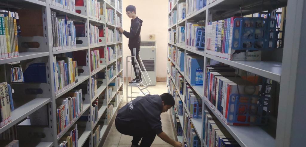 下午两点十五分,志愿者们就自觉按班排成一列。签到结束后,活动负责人对志愿活动要求以及注意事项进行说明,本次活动主要对校友之家内部以及图书B馆的书库进行清扫整理。在校友之家对接负责人李龙和图书管理老师的带领之下,同学们忙碌了起来,拖地,擦拭校友之家里的展览物品;图书馆内擦拭书架,给书籍排序,将书整理整齐等等,脏活、累活志愿者们都积极主动地去承担。经过几个小时的清理之后,卫生情况有了很好的改善。