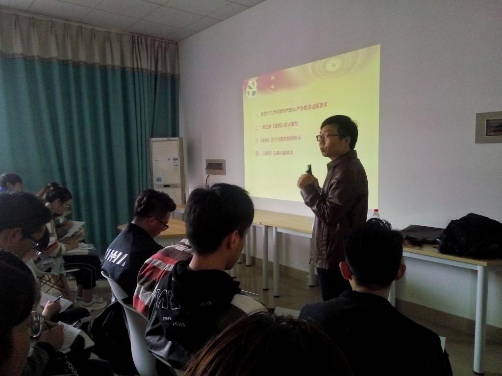 最后,涂道勇也对到课学员提出了几点希望与要求,希望学员通过此次课程的学习后深入对《准则》等党的规章制度了解并自主学习其他相关条文,不断反省与完善自我,在平时学习生活中从思想上、政治上、言行上严格要求自我,向身边的优秀党员看齐,争取早日成为一名合格的党员,为我国的共产主义事业贡献出一己之力。