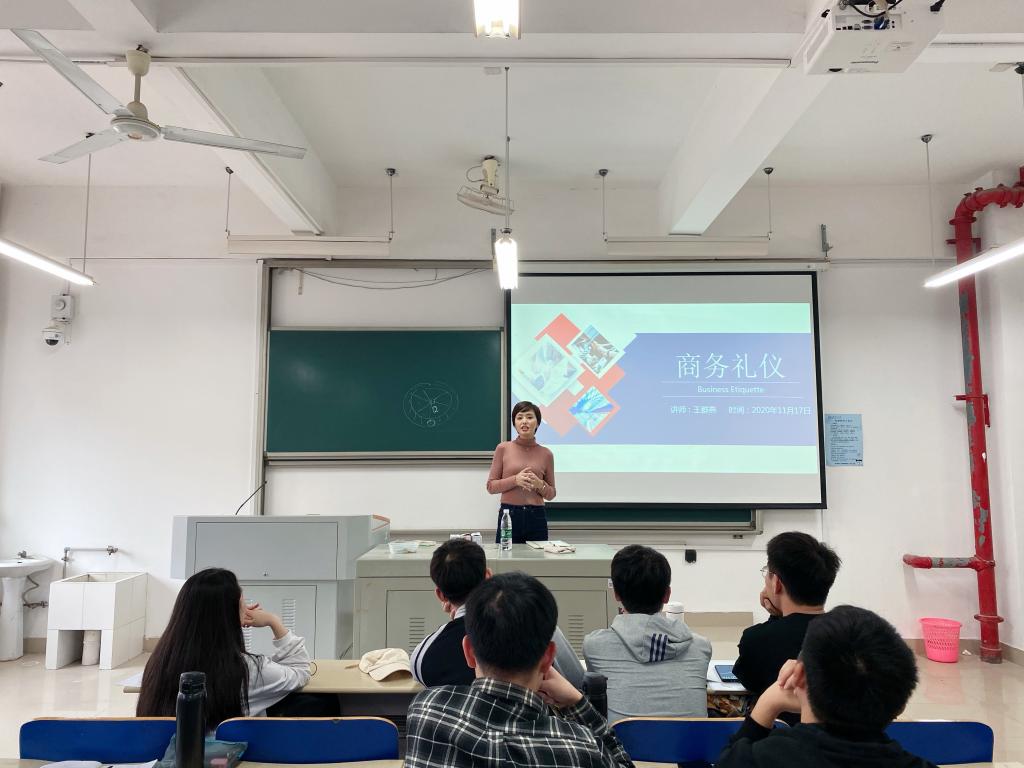 2020年11月17日14:00,三一集团与威廉体育williamhill联培国际班第三次培训课程在工一B211举行。本次课程由三一集团泵送事业部国际营销公司国际营销管理经理王群燕经理主讲,主题为“商务礼仪”,国际班十八名学员参与了此次培训。