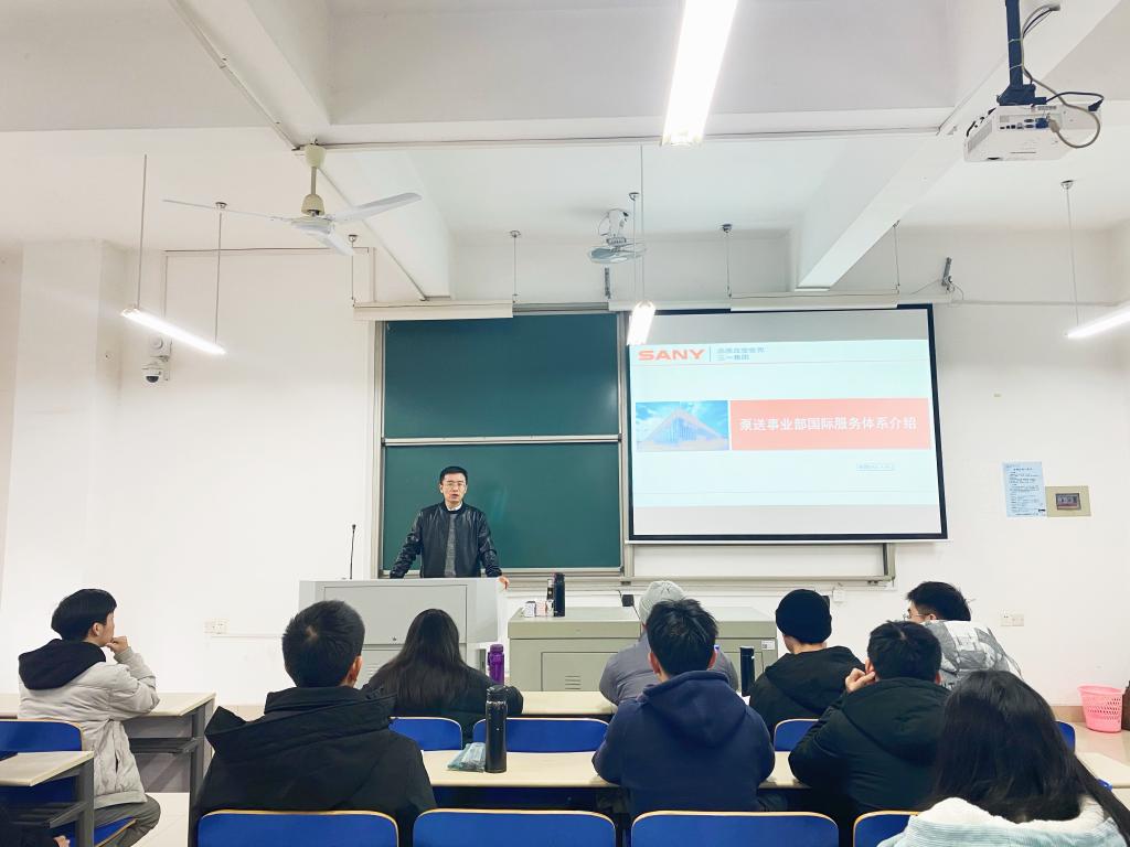 2020年12月8日14:00,三一集团与威廉体育williamhill联培国际班第六次培训课程在工一B212举行。本次课程由三一集团泵送事业部国际营销公司服务管理部副部长徐加友主讲,主题为“专业英语(售后服务、产品故障)”,国际班十八名学员参与了此次培训。