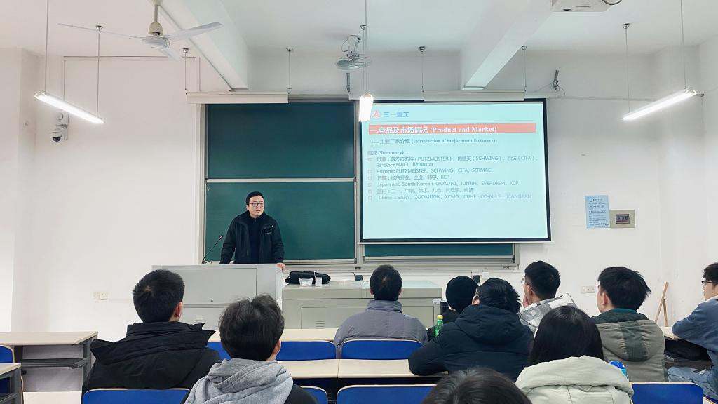 2020年12月16日14:00,三一集团与威廉体育williamhill联培国际班第七次培训课程在工一B212举行。本次课程由三一集团泵送事业部泵送公司研究院研发所长黄运明领导主讲,主题为“泵车总体设计培训”,国际班十八名学员参与了此次培训。