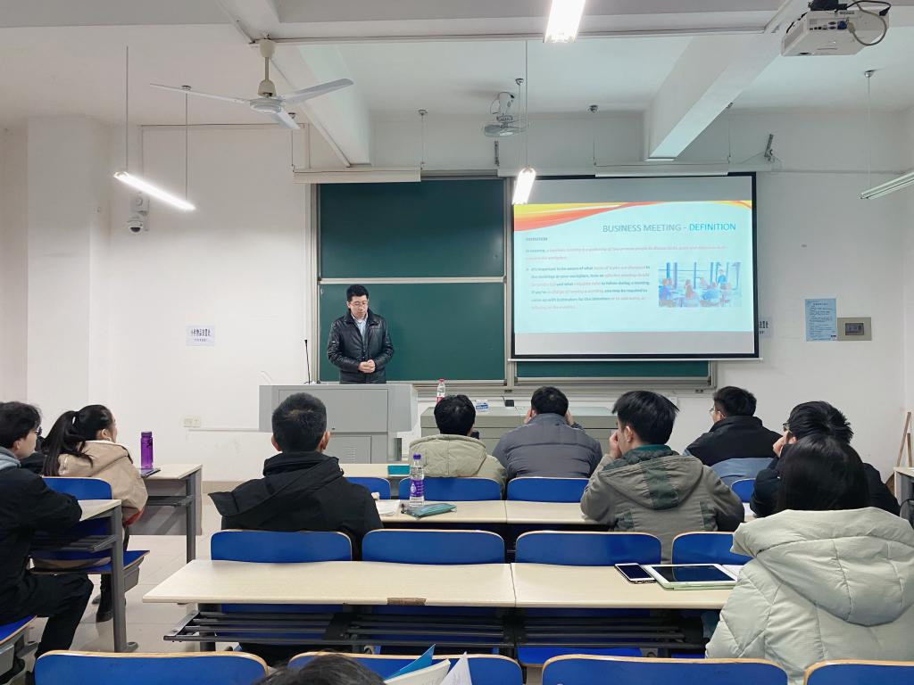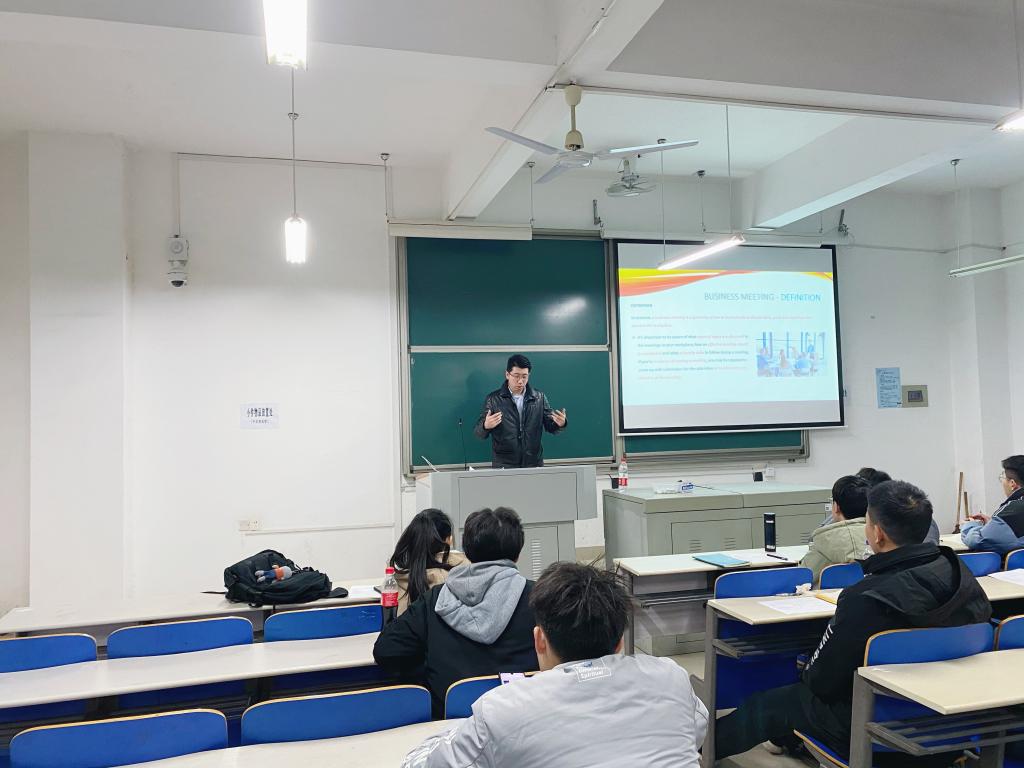 2020年12月23日18:30,三一集团与威廉体育williamhill联培国际班第八次培训课程在工一B212举行。本次课程由三一集团泵送事业部国际营销公司营销管理部国际营销经理梁贺新主讲,主题为“专业英语(会议)”,国际班十八名学员参与了此次培训。