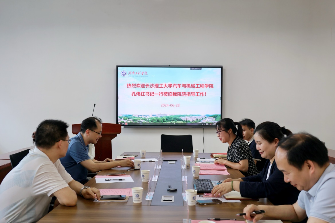 6月28日下午,我院党委书记孔伟红、副院长唐宏宾、工程车辆安全性设计与可靠性技术湖南省重点实验室主任尹来容一行赴湖南工程学院机械工程学院调研交流,机械工程学院党委书记覃波、院长陈国强、副院长程玉兰、实验中心主任王高升、学科与科研岗位负责人张文琳、党务专干刘珈黎及部分在湖南工程学院任教的威廉体育williamhill校友教师出席会议。