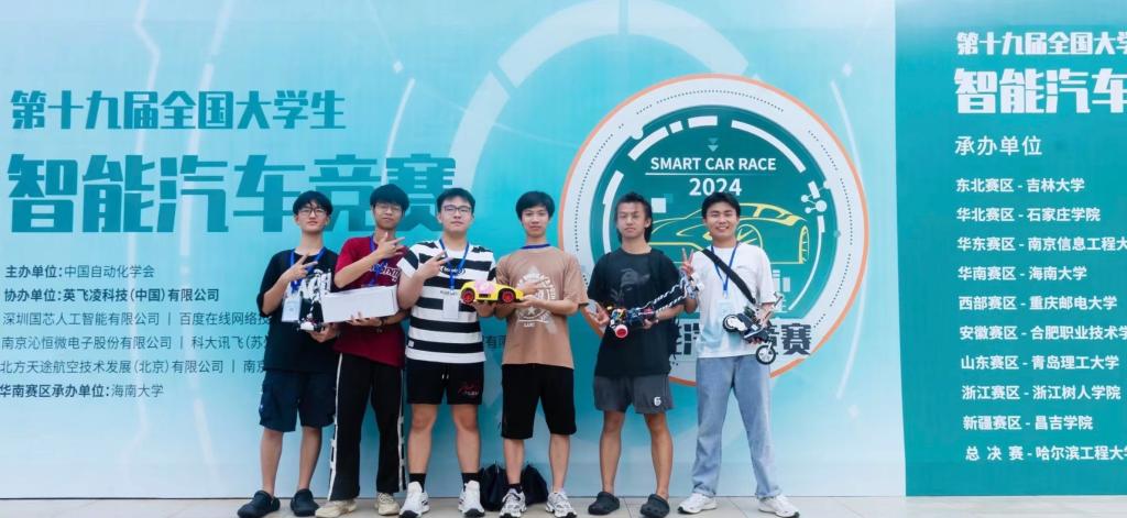 2024年7月15日-17日,第十九届智能汽车竞赛华南赛区(竞速组别)在海南省海口市海南大学举行比赛,车队队员通过校赛选拔,参加了模型组、电磁组、镜头组3个组别。3支队伍都发挥了自身的实力,积累了宝贵的现场参赛经验,最终取得了赛区一等奖、二等奖和三等奖各1项,模型组晋级国赛。2024年8月20日-22日,总决赛在哈尔滨工程大学举行,模型组的队员们克服条件上的困难,沉着冷静,不断解决技术难题,与高水平队伍展开激烈切磋,取得了全国二等奖的好成绩。