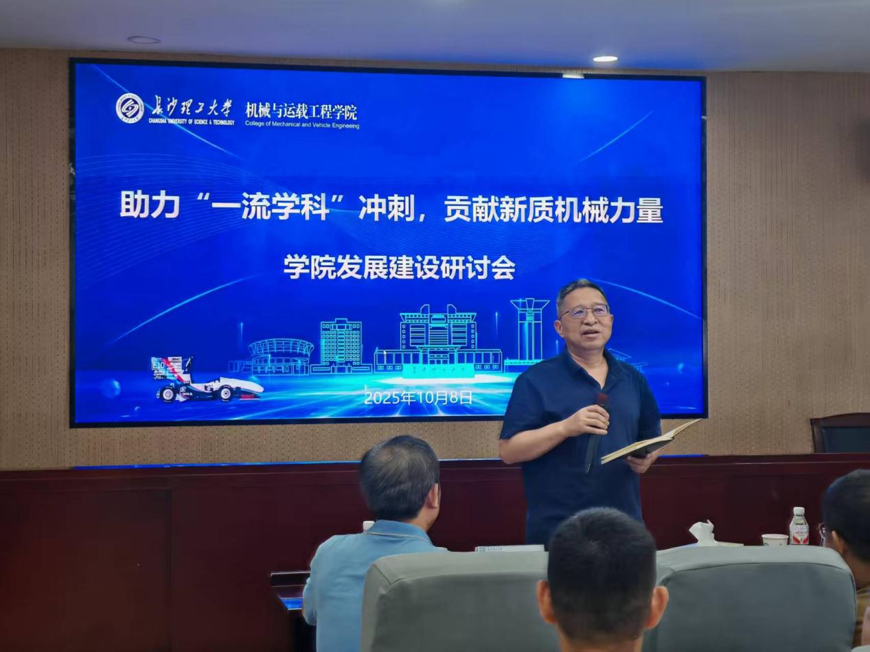 2025年10月8日,机械与运载工程学院发展建设研讨会在工科一号楼B417会议室顺利召开。本次会议以“助力‘一流学科’冲刺,贡献新质机械力量”为主题,学院全体教职工齐聚一堂,共商发展大计,共谋学科未来。