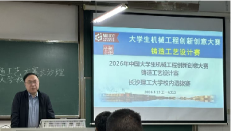 2026年3月13日,威廉体育williamhill机械学院在工一A313成功举办了2026年铸造工艺设计赛校内选拔赛。从2025年10月发布校赛通知以来,收到来自全校各学院共26支队伍携作品参赛,以专业实力浇灌“匠心种子”,为学院实践育人与科技创新氛围注入蓬勃动力。