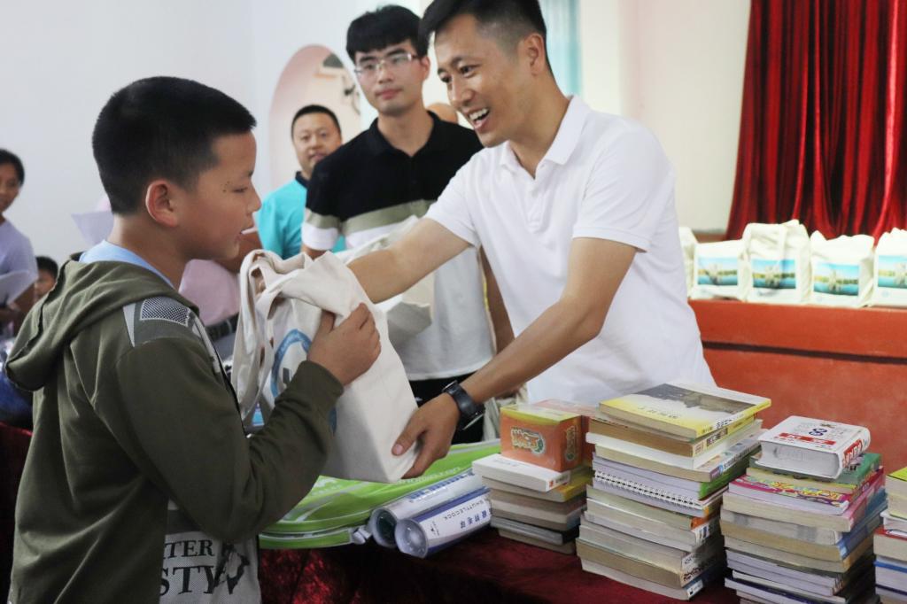 7月11日,学校副校长刘扬带领汽机学院、文法学院党政班子赴威廉体育扶贫点,开展以“传递书香,润泽心灵”为主题的图书、文具捐赠活动,为枧杆山村的孩子们送去暑期温暖。